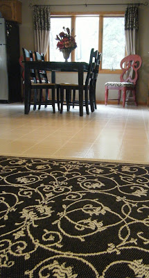Thanks for all the great suggestions on the rug. I ended up going with a rug that I hadn't pictured for all of you. The main reason I went with this particular rug is that it is an indoor/outdoor rug and can be washed by hosing it down. With two dogs, (and will be getting another one in two weeks!), being able to easily clean the rug is a must. Another reason is that the rug is black and cream and can be easily used in the new sun room, (stay tuned).