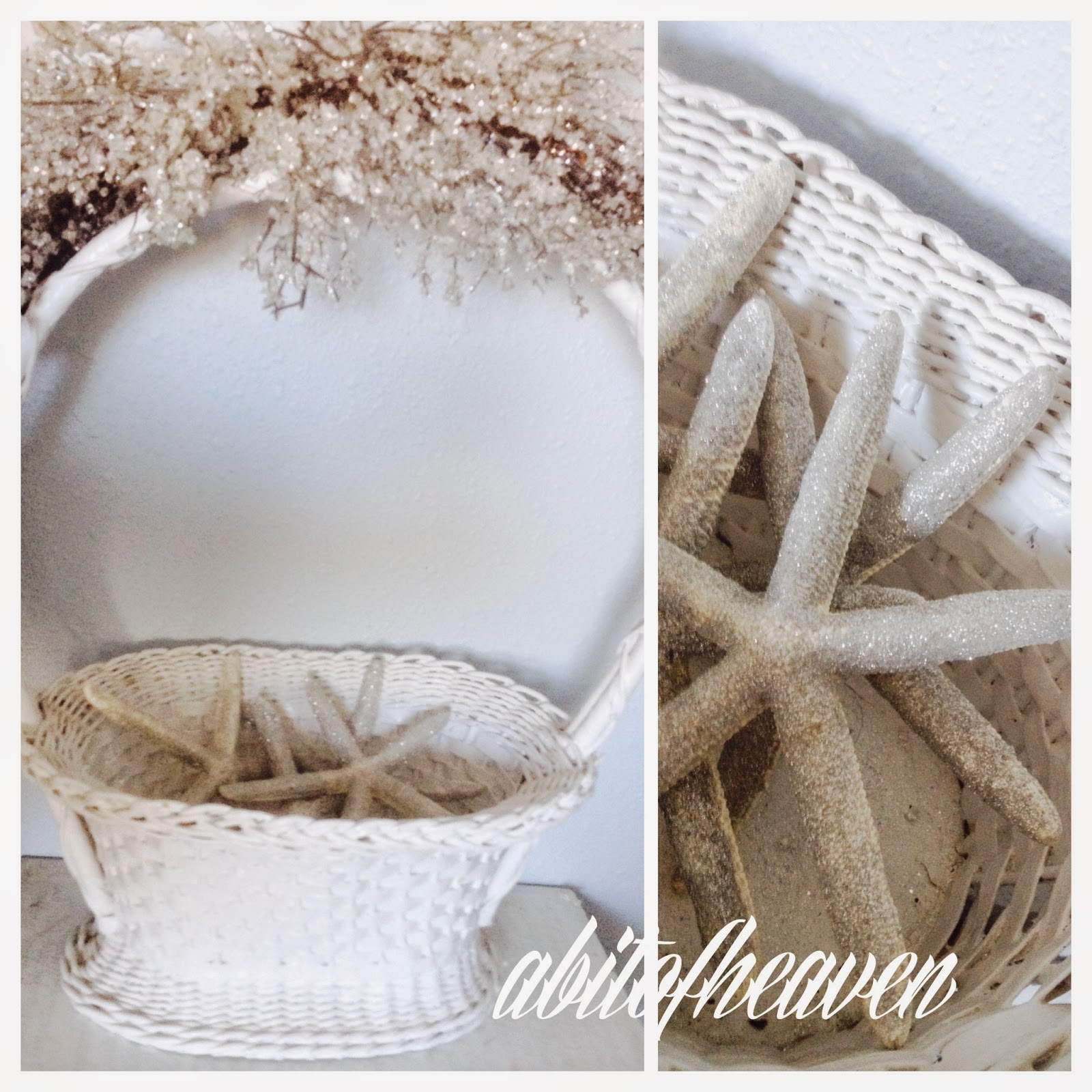 To glitter starfish use spray adhesive and shake on silver glitter or glass glitter. Use a glitter tray from a craftstore. It will save you frustration and glitter!