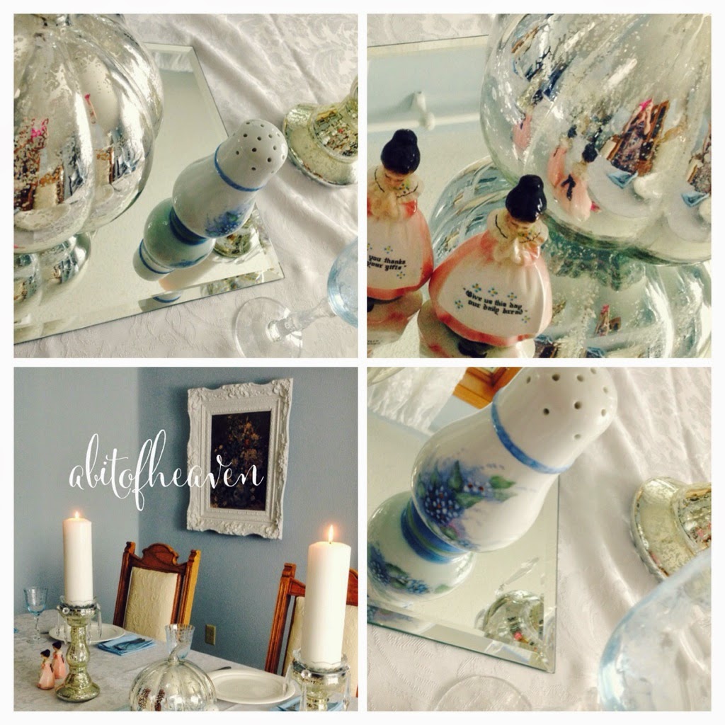 At my house, on holidays, vintage items make their way from the cabinet, to the dining room table. Worn treasures that were once loved are still loved. Some items have belonged to my loved ones, others carry the mystery of their existence in their cracks and crevices. I can only wonder whose table they onced graced.