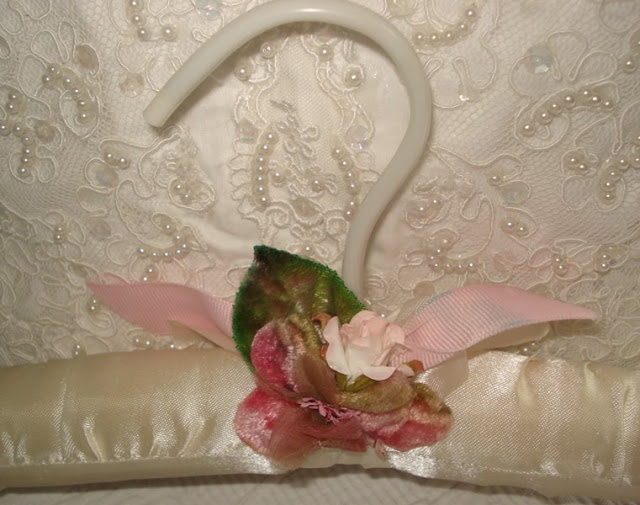 A soft hanger is trimmed with a pretty velvet roses. A rose garden for the home.
