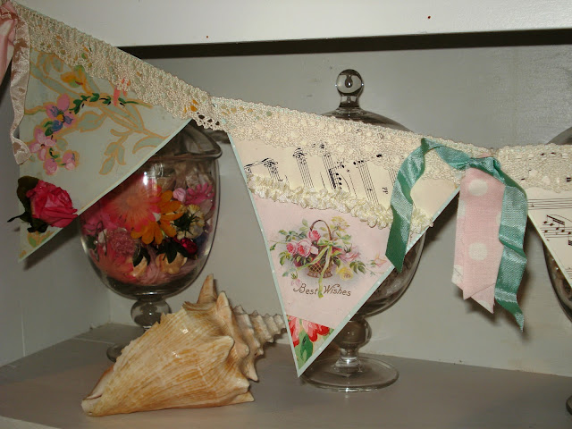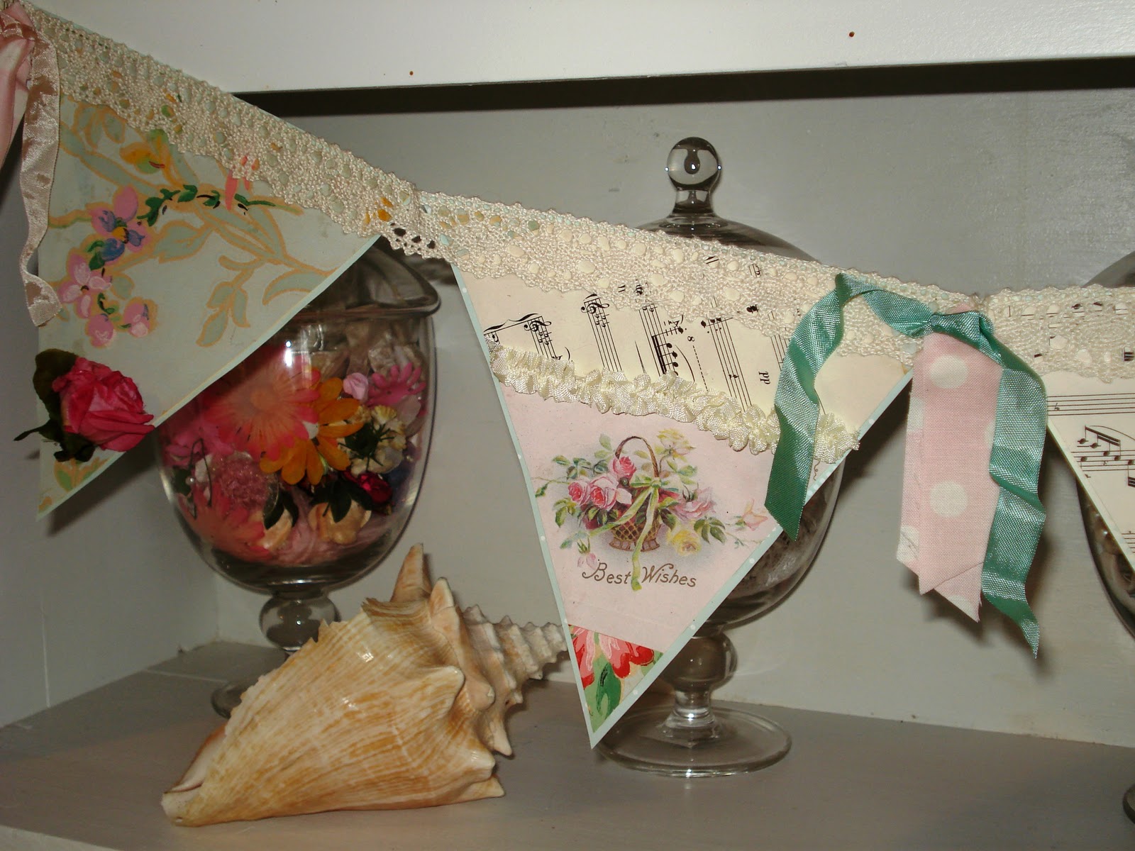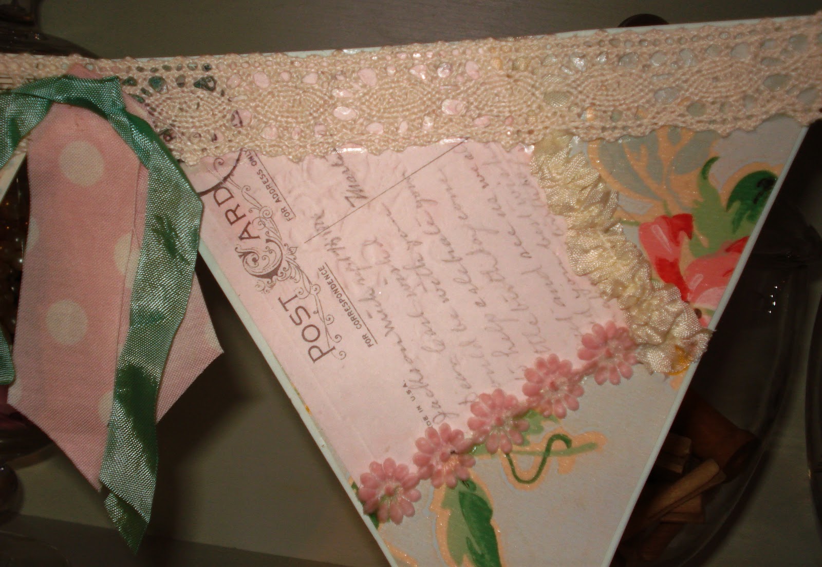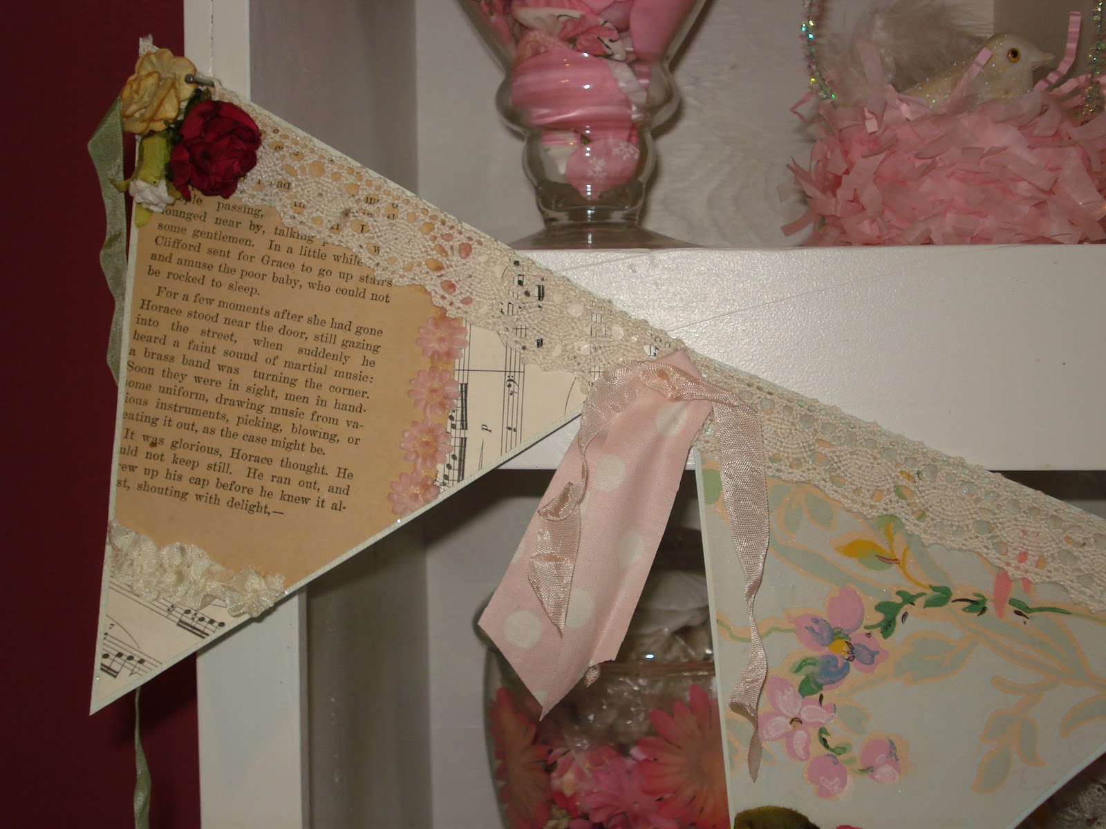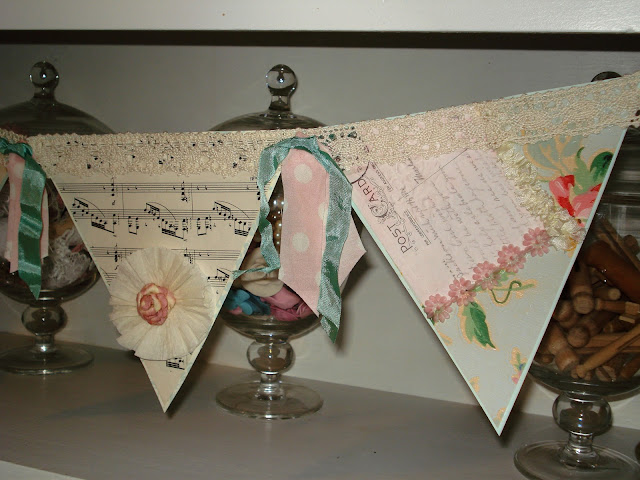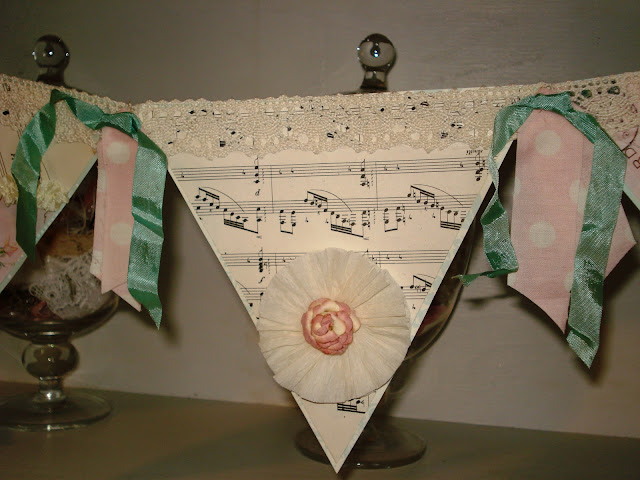 I love making banners...I am working on my 2nd Halloween one right now... This one is sooo pretty... I add vintage music sheets to just about all of them... they just make them a little more fun!