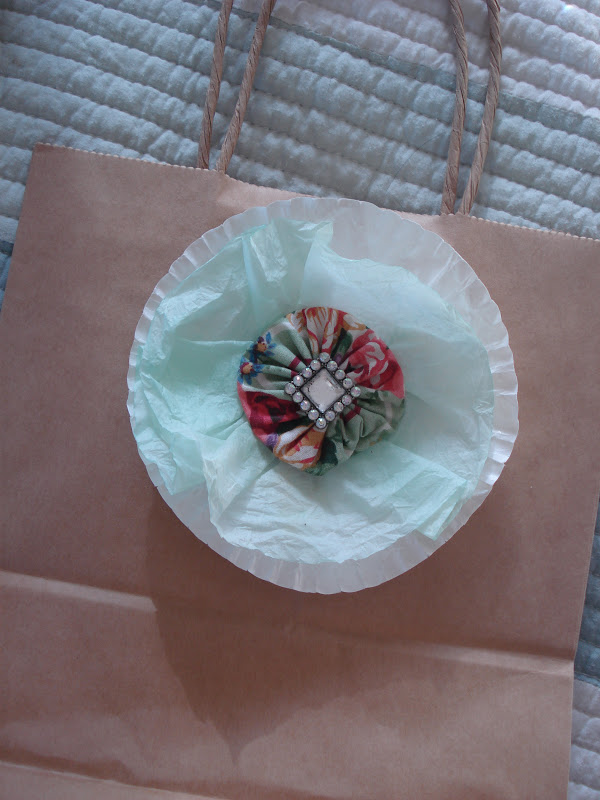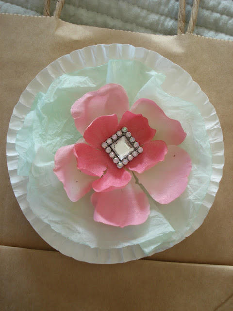 Need gift bags for all of your Black Friday purchases? Add a Christmas themed center, (from your local craft store), to the flower.
