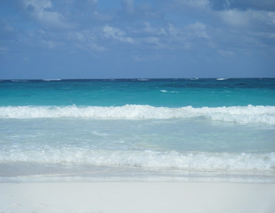 Each time I visit the Carribbean, I stand in awe of the vibrant, yet peaceful colors God has painted upon our earth. My recent vacation wasn't any different. My mission, upon returning home, turned to thoughts of creating vignettes of this beautiful calm. Sand provides soothing ground for inspiration with shades of white and lots of texture. My collection of white milk glass started singing to me before I had even set down my suitcase.