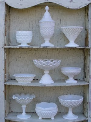 Milk glass isn't just for great grandma anymore. The calm, chic look has achieved a new level in decorating and is showing up on shelves, in cupboards, and even in wedding decorations.