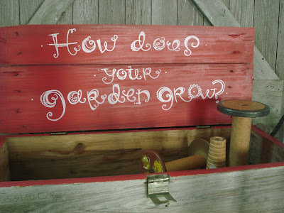 "How does your garden grow", antique wooden box. My niece made this beauty. I plan to add geraniums.
