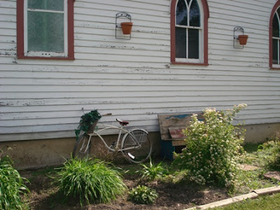The church building in the background is my studio. This is where my items are crafted. LOOK AWAY FROM THE MUCH NEEDED PAINT JOB! An old bench also sits under a window.