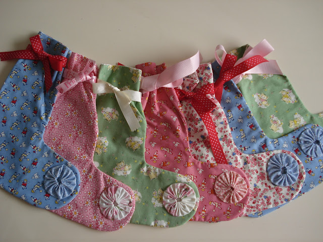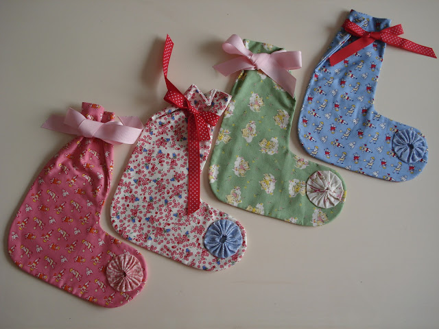 These Christmas stockings have many uses; hang on a tree, tuck in a gift (or gift card), pin to a ribbon and hang across a window, hang across a mantle.....the list goes on.